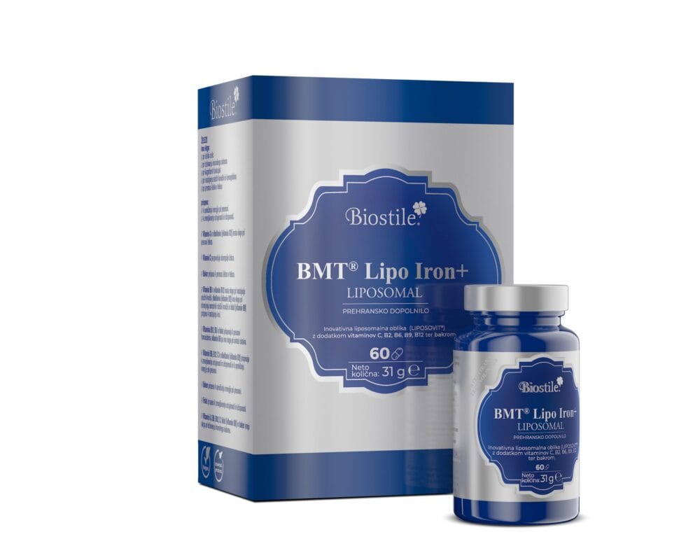 BMT® Lipo Iron+ je dodatak prehrani nove generacije, namijenjen osobama koje trebaju željezo, ali ne podnose uobičajene pripravke željeza. Sadrži patentirani liposomalni oblik željeza Liposovit®–Fe, koji osigurava dvostruko bolju apsorpciju i ne uzrokuje probavne tegobe poput mučnine, zatvora ili metalnog okusa u ustima.