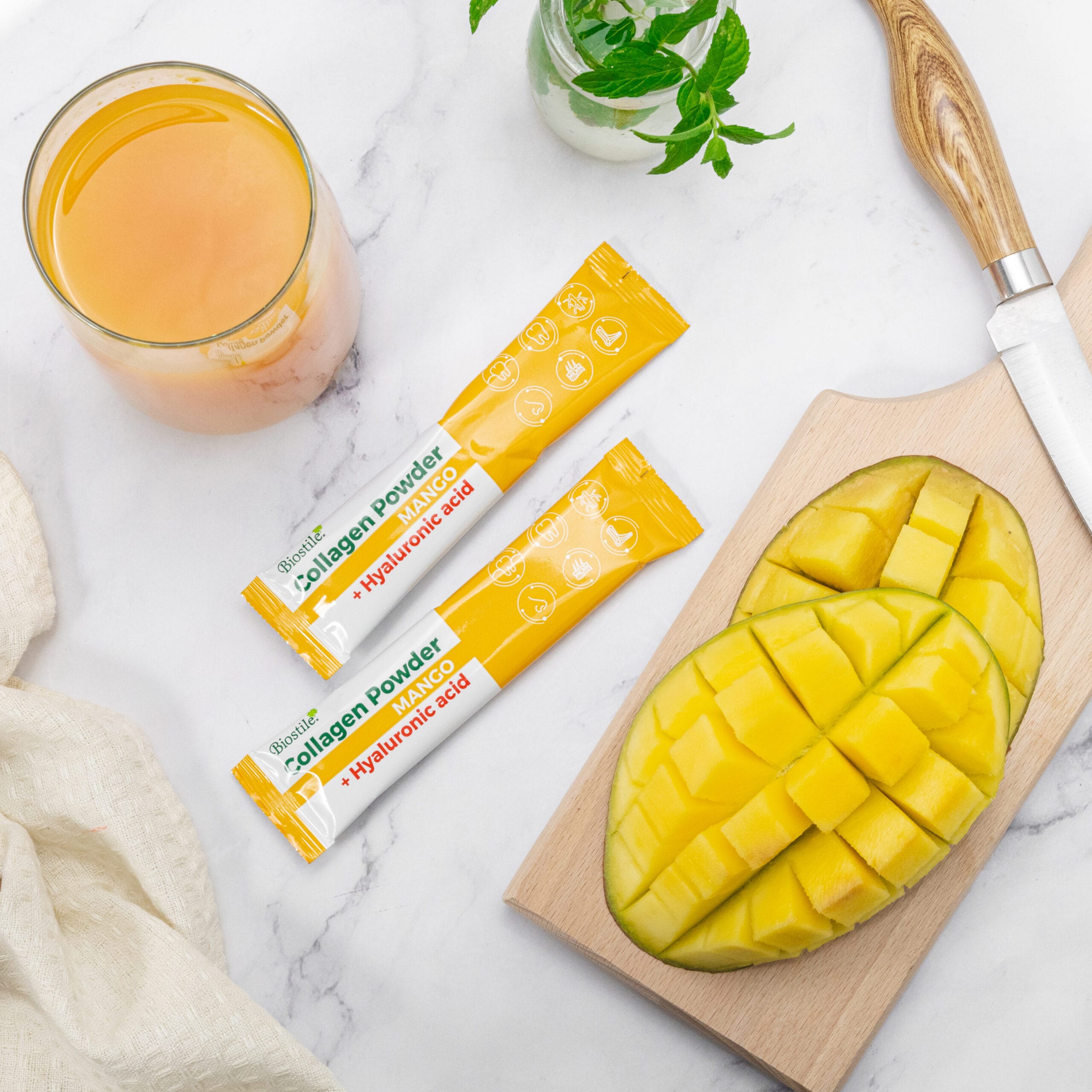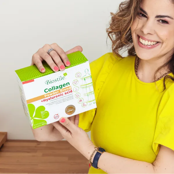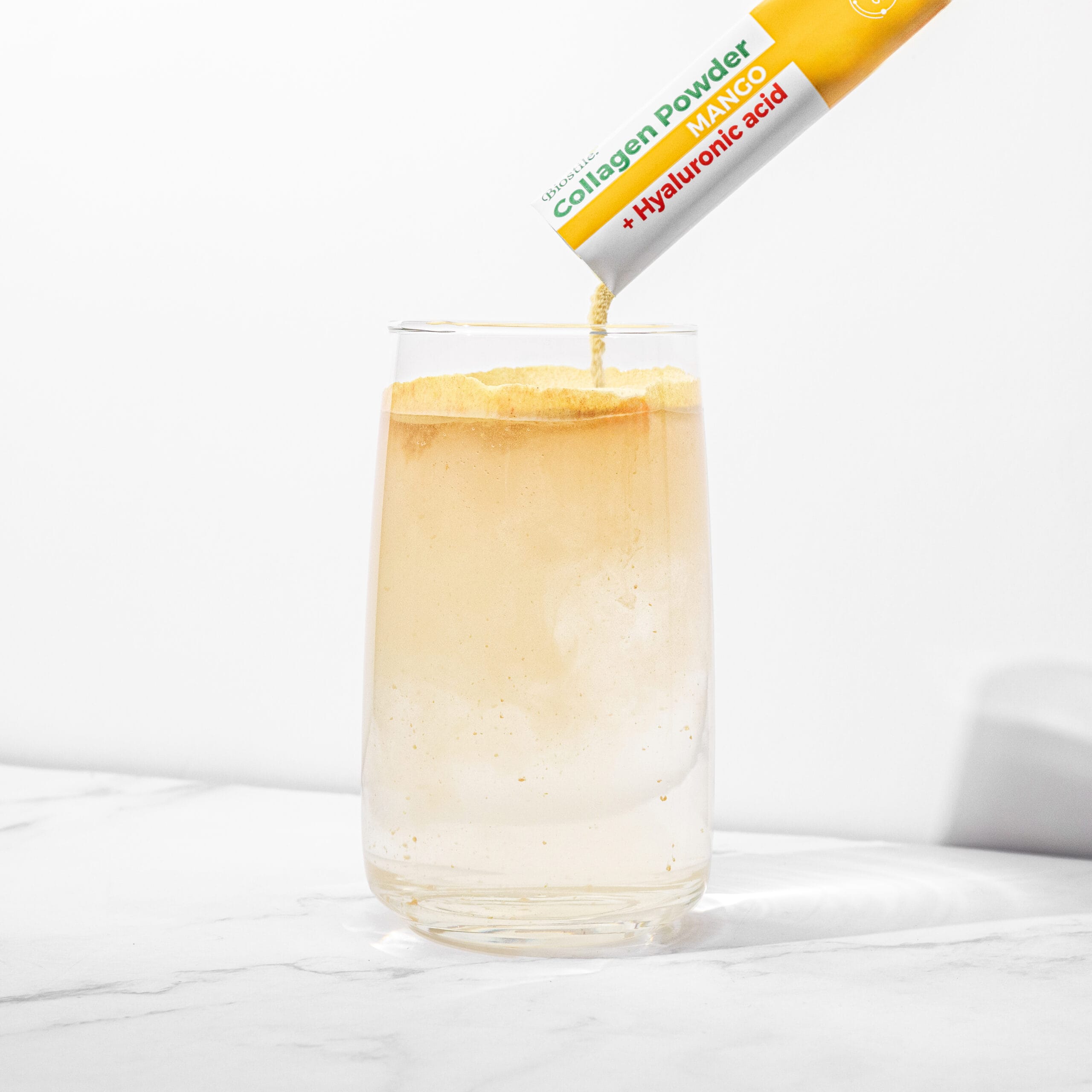 Hidrolizirani goveđi kolagen tipa I, hidrolizirani riblji kolagen tipa I, zaslađivači (ksilitol i sukraloza), ekstrakt korijena kurkume (Curcuma longa) standardiziran na najmanje 95 % kurkuminoida, planinska smola šilajit (mumio), prirodna aroma šipka (Rosa canina), ekstrakt plodova standardiziran na najmanje 70 % vitamina C (L-askorbinska kiselina), hidrolizirani goveđi kolagen tipa II, natrijev hijaluronat (hijaluronska kiselina), ekstrakt mladih izdanaka bambusa (Bambusa vulgaris) standardiziran na najmanje 75 % silicija, hidrolizirani pileći kolagen tipa II, membrana ljuske jajeta.